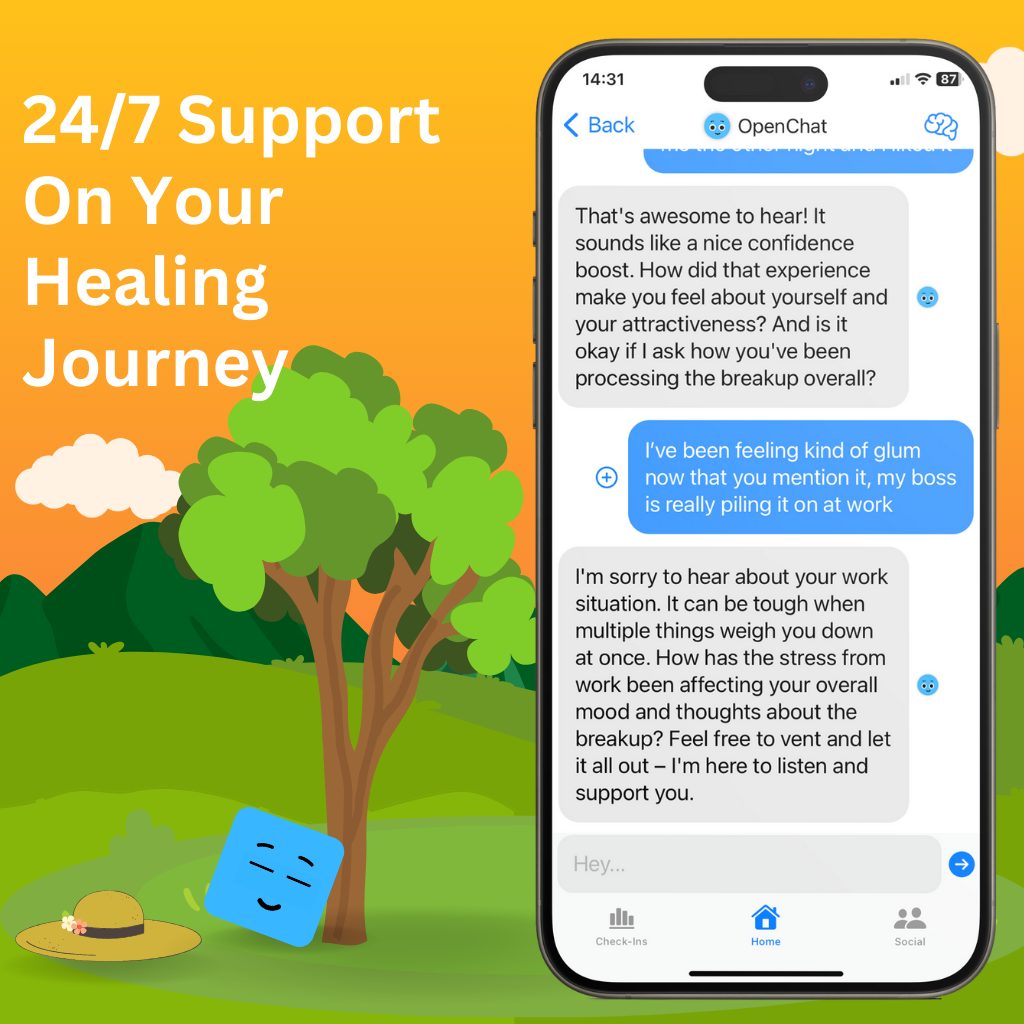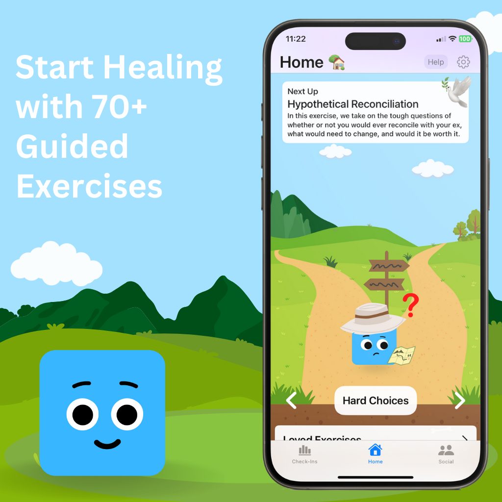 Discuss your breakup, vent, complete healing exercises, track your progress, journal, and get on the healing track with Breakup Buddy™